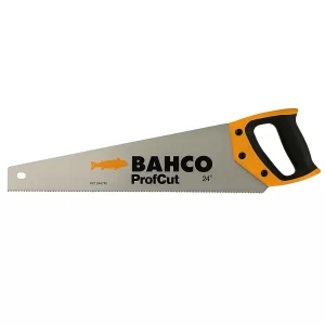 El Serrucho Profcut 24 (PC-24-TIM) de Bahco es una sierra manual de 24 pulgadas, ideal para el corte de madera. Cuenta con un dentado GT súper afilado y una empuñadura bimaterial cómoda. Este modelo, a menudo vendido en cajas de 4 unidades, es conocido por su alto rendimiento en todo tipo de maderas.