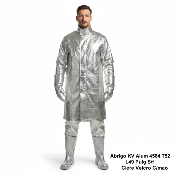 El “Abrigo Kv Alum 4584 T52 L49 Pulg S/f Cierre Velcro C/mao” es una pieza de vestimenta técnica, quizás un abrigo, con especificaciones detalladas como su composición (Kv Alum), dimensiones (T52 L49 Pulg), y tipo de cierre (Velcro), indicando un uso específico o profesional.