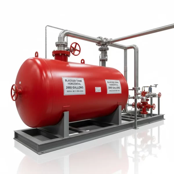 El Bladder Tank – Horiz – 2800 Gall S/rc – Nf/ul es una solución de almacenamiento horizontal con una capacidad de 2800 galones, diseñada para ser confiable y cumplir con las especificaciones de seguridad.