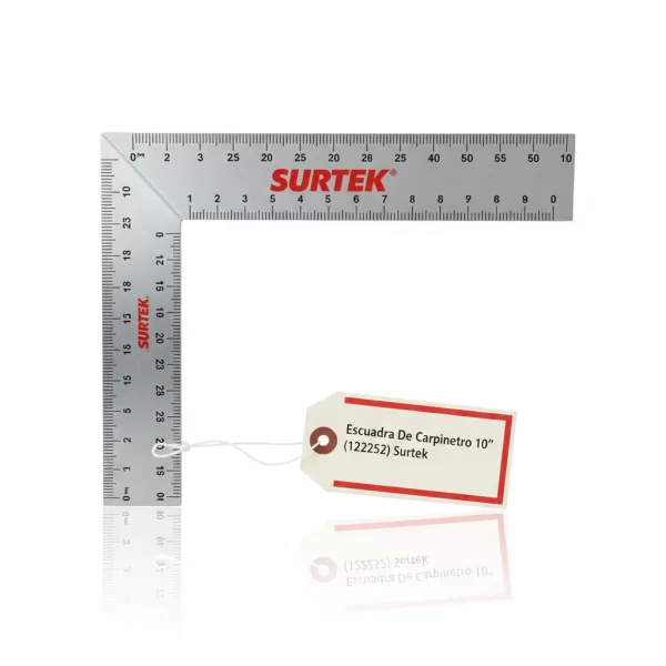 La Escuadra De Carpintero 10 (122252) Surtek es la herramienta esencial para cualquier profesional, asegurando ángulos perfectos y trabajos precisos.