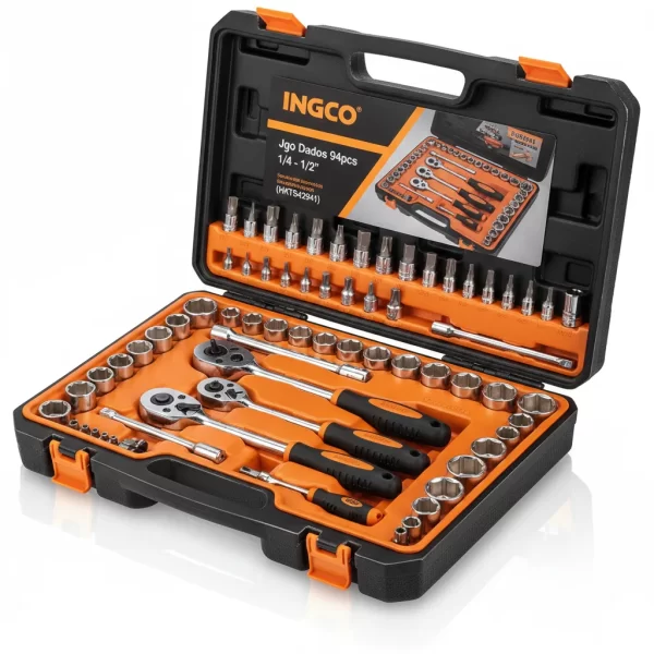 El Jgo Dados 94pcs 1/4 – 1/2 (hkts42941) Ingco es tu kit de herramientas esencial, ofreciendo 94 piezas de alta calidad para cualquier tarea de mecánica o reparación.