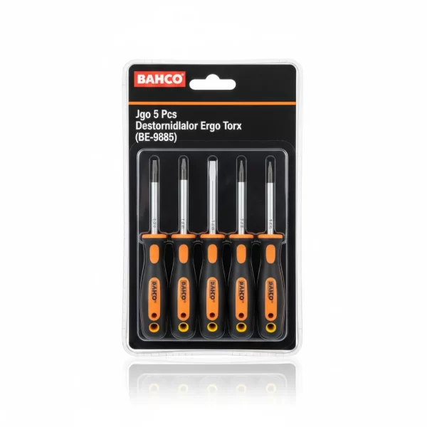 Este juego de 5 destornilladores Ergo Torx Bahco (BE-9885) ofrece la calidad y ergonomía necesarias para trabajos de precisión y torsión.