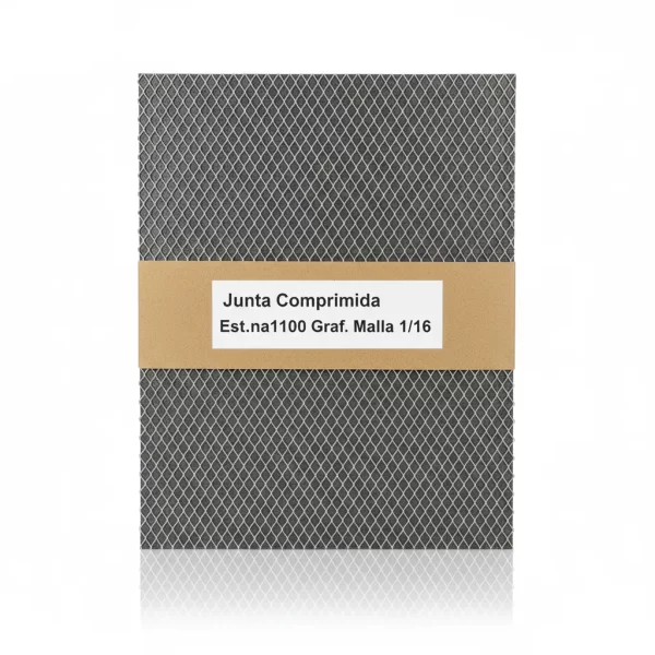 La Junta Comprimida Est.na1100 Graf. Malla 1/16 es una lámina de sellado de alto rendimiento, compuesta de fibra de carbono y grafito, y reforzada con una malla metálica para una mayor resistencia, ideal para aplicaciones industriales exigentes.