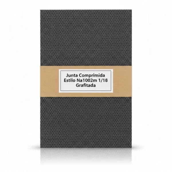 La Junta Comprimida Estilo NA1002M 1/8 Grafitada es ideal para aplicaciones universales, destacando su composición con fibra aramida y caucho NBR, y la adición de una malla metálica (M) para una superior resistencia. Es una solución versátil y robusta para el sellado industrial.