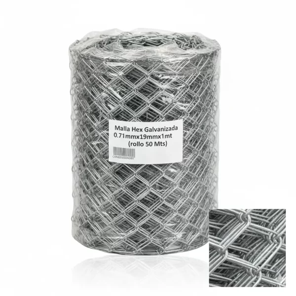 Malla Hex Galvanizada 0.71mmx19mmx1mt (rollo 50 Mts)