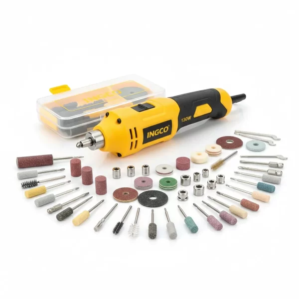 Descubre el potencial del Mini Torno Eléctrico Ingco MG13328-7, una herramienta de 130W que incluye 109 accesorios para una amplia variedad de trabajos. Ideal para detallado y precisión, con velocidad variable y presentado en un práctico maletín.