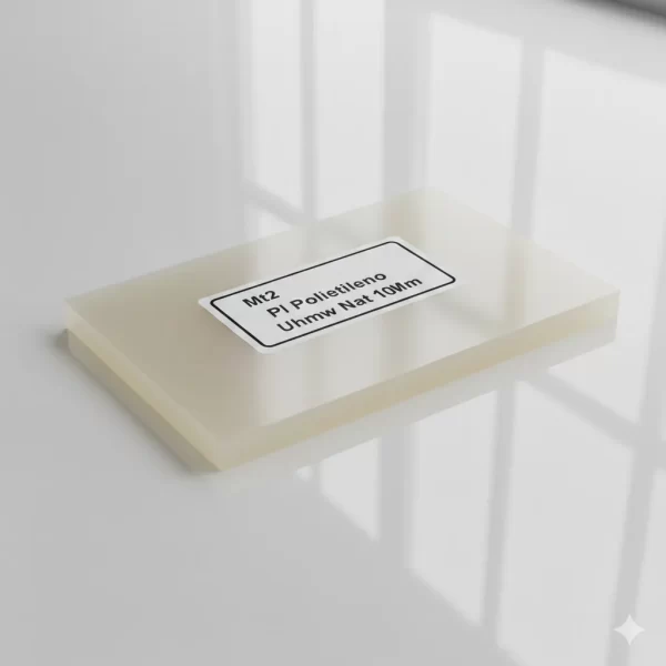 El Mt2 Pl Polietileno Uhmw Nat 10 Mm es una placa de polietileno de ultra alto peso molecular (UHMW) de 10 mm de grosor, conocida por su extrema durabilidad, baja fricción y excelente resistencia a la abrasión, ideal para aplicaciones industriales.