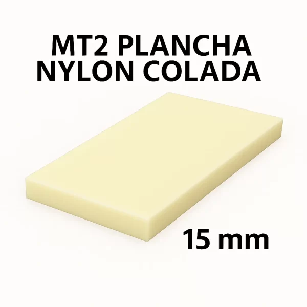 La Mt2 Plancha Nylon 15 Mm es ideal para proyectos que requieren resistencia y un grosor específico.