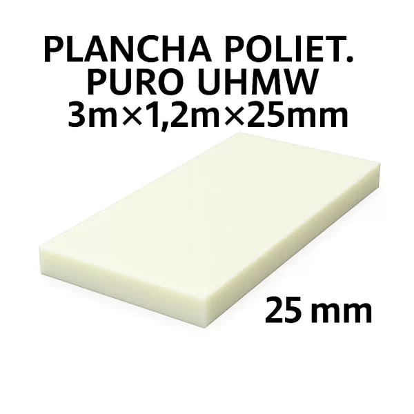 La Plancha Poliet Puro Uhmw de 3mx1.2mx25mm es ideal para aplicaciones que requieren alta resistencia al desgaste y bajo coeficiente de fricción.