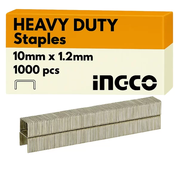 Asegura tus proyectos más exigentes con el Set 1000 Grapas 10mmx1.2mm Trabajo Pesado Ingco (sts0210), diseñado para una sujeción fuerte y duradera.