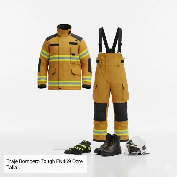 El Traje Bombero Tough En469 Ocre Talla L garantiza la máxima protección y durabilidad para enfrentar las condiciones más extremas.